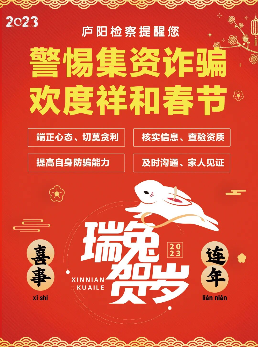 新春佳节,万家团圆。然而,少数不法分子却盯上了大家辛辛苦苦一年挣下的收获。他们打着高回报、低风险、高利率等幌子,开展非法集资违法犯罪活动。天上不会掉馅饼,检察官提醒:警惕非法集资,守好钱袋子,护好幸福家。