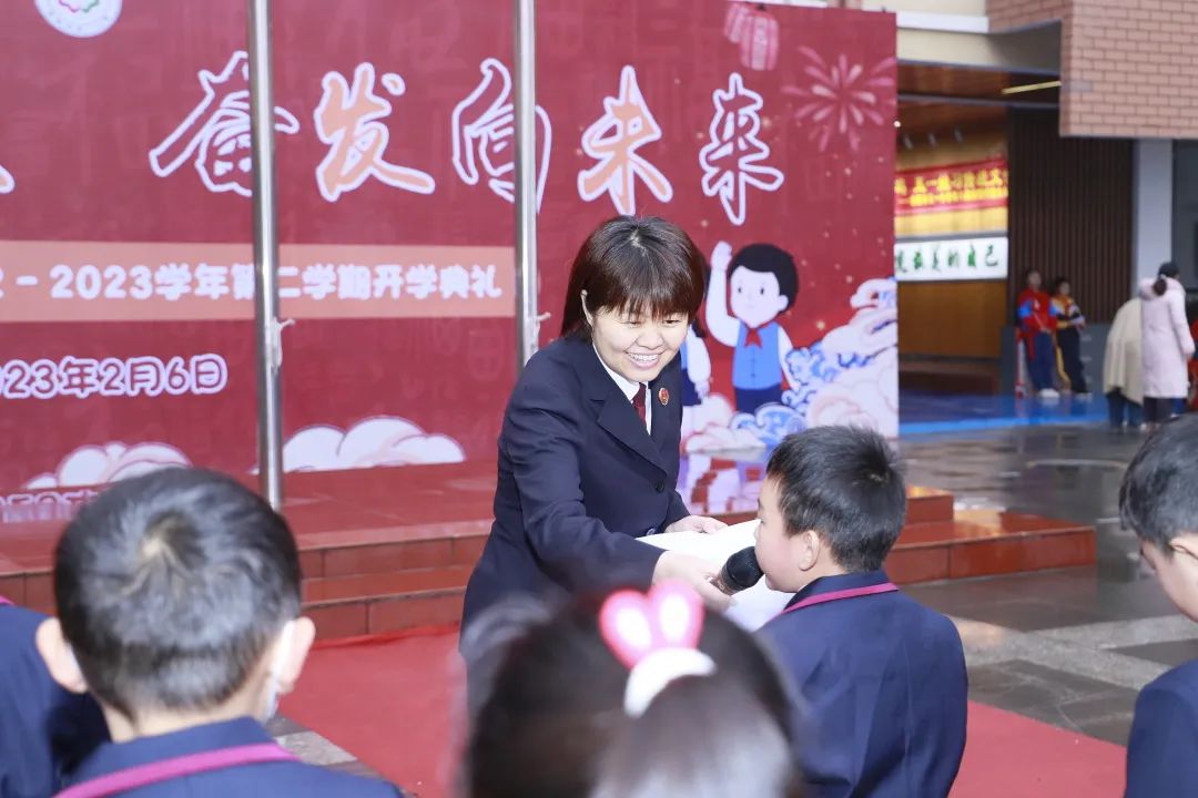 2月6日,合肥市庐阳区检察院干警参加五一小学开学典礼,并开展法治“微”宣讲。图为干警在宣讲中与学生开展互动。