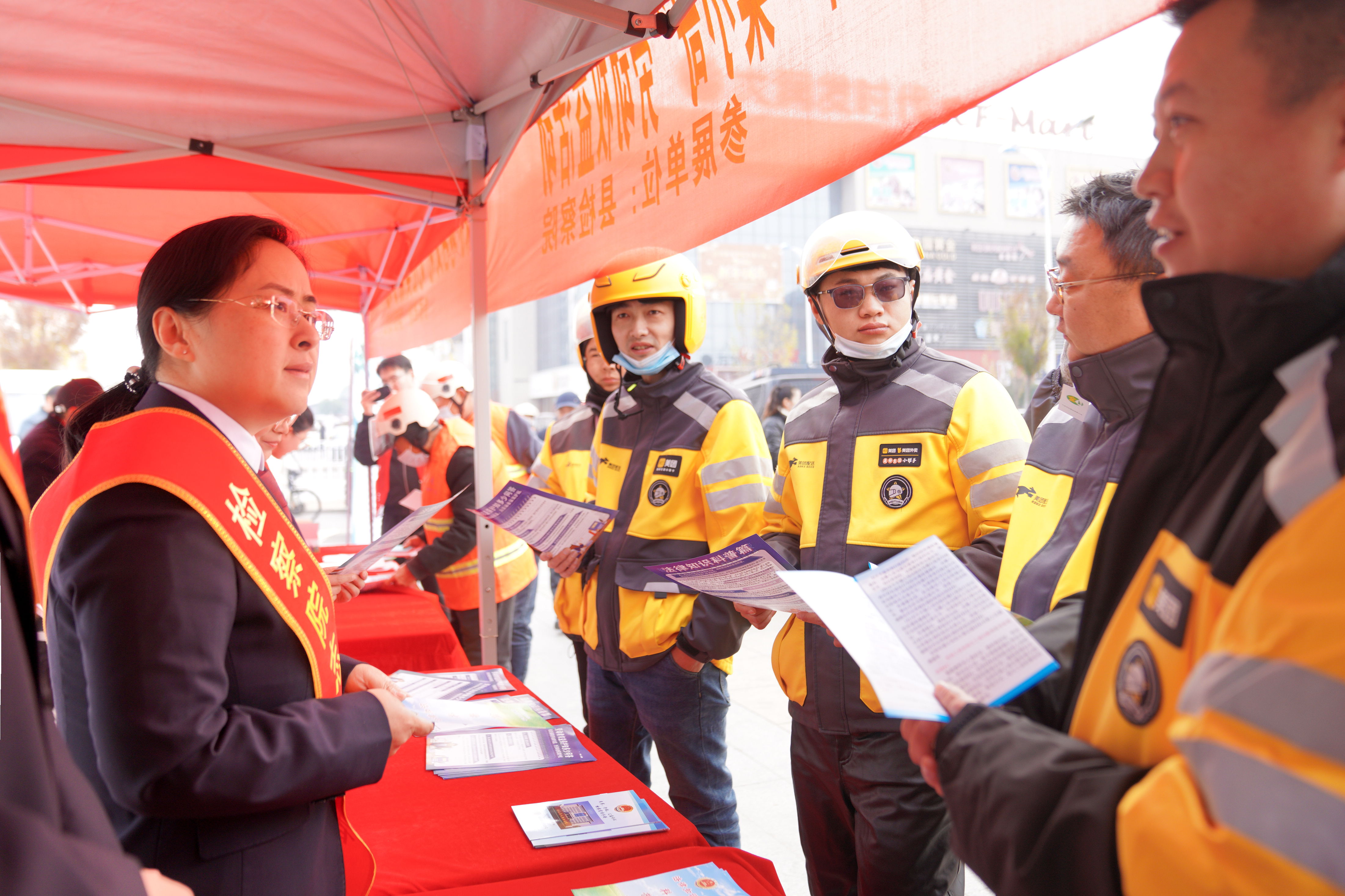 砀山县检察院组织干警走进砀山古城广场,开展“梨乡公益,保障‘梨小哥’新业态劳动者权益”主题志愿者法治宣传活动。