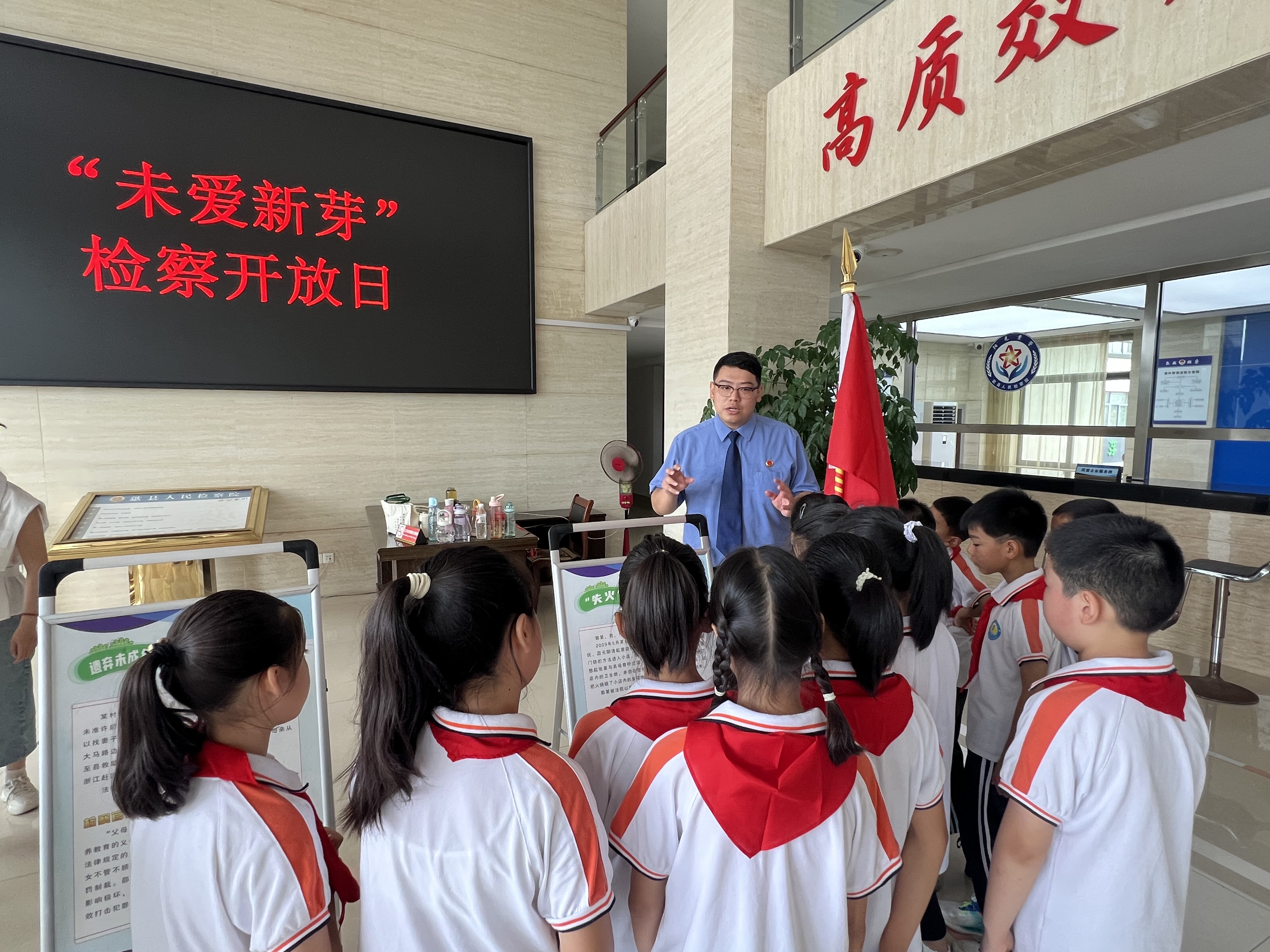 9月1日,歙县检察院邀请丰乐小学部分学生到院参观体验。图为干警为学生们普及未成年人法律知识。