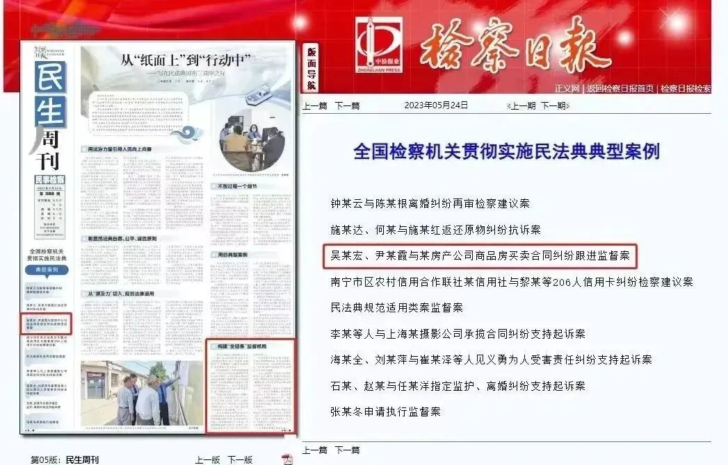 ▲案件入选最高人民检察院第六检察厅与国家检察官学院联合编发的贯彻实施民法典典型案例。