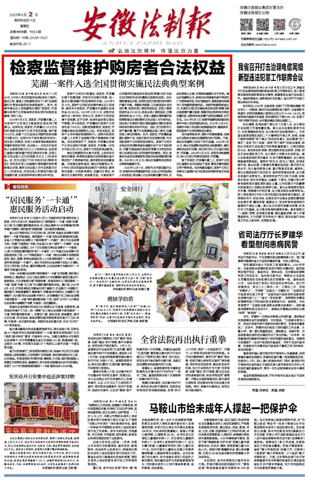 2023年6月2日《安徽法制报》头版头条