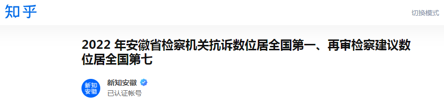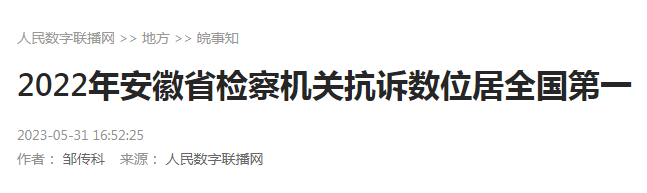 2022 年安徽省检察机关抗诉数位居全国第一、再审检察建议数位居全国第七