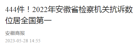 444件!2022年安徽省检察机关抗诉数位居全国第一