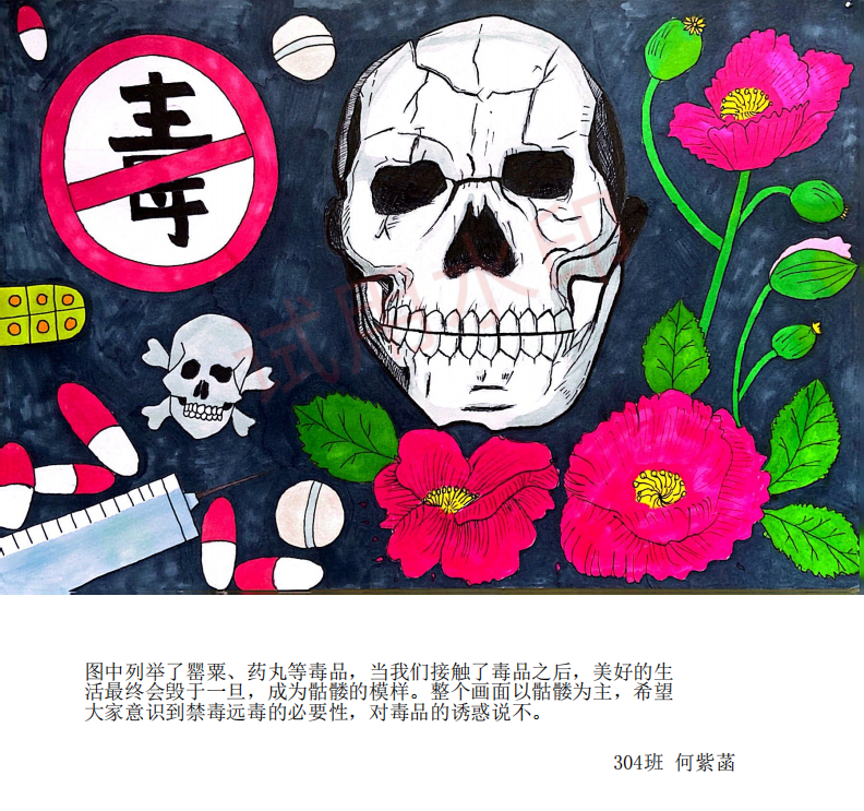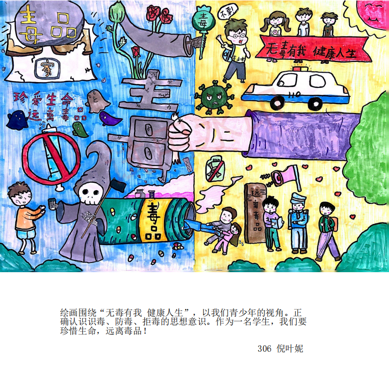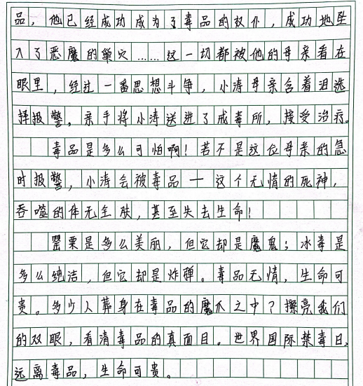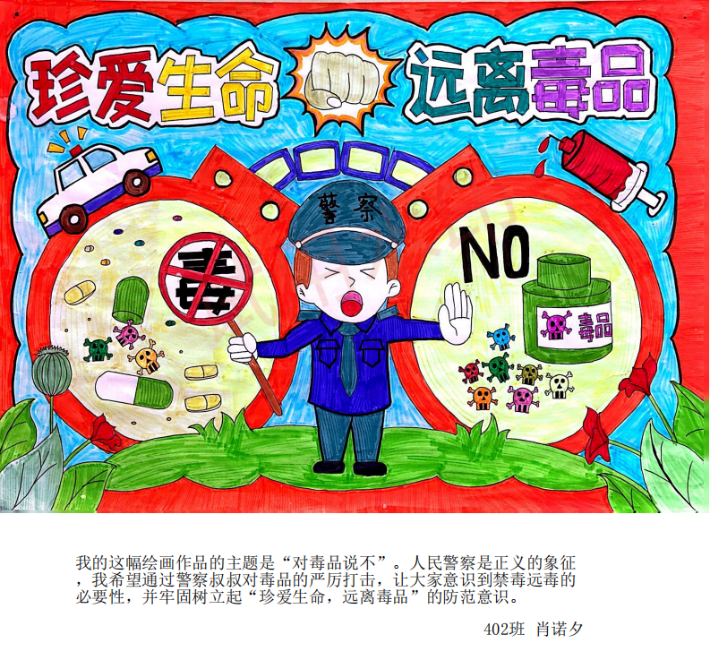 小朋友们用手中的笔,将毒品的危害展现在纸上,通过此次活动,有效提高了学生对于毒品的认识。