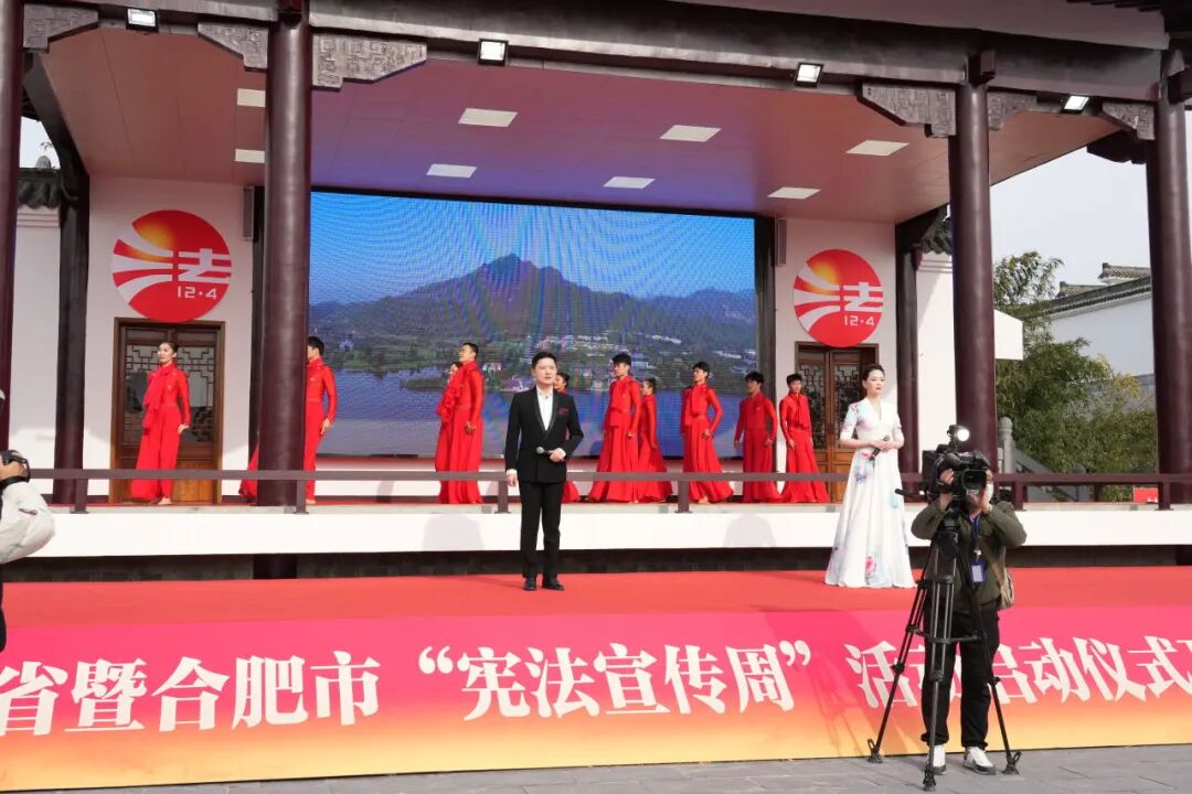 11月30日, 安徽省委宣传部、省人大常委会监察和司法工委、省司法厅、省法宣办在肥西县山南镇小井庄村举行2023年省暨合肥市“宪法宣传周”启动仪式,省检察院等56家单位工作人员及周边群众近500余人参加启动仪式。