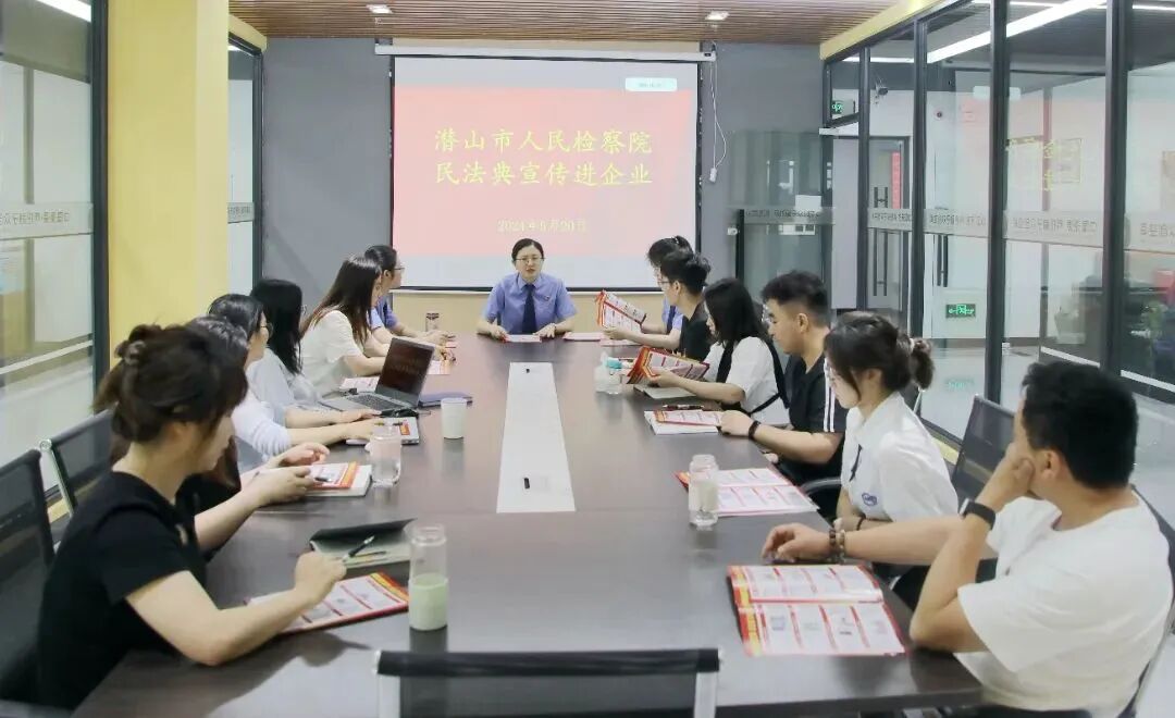 5月21日,潜山市检察院干警前往中国刷业跨境电商产业园开展民法典主题宣传。