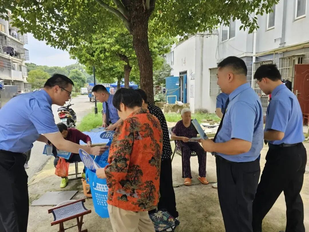 7月17日,六安市舒城县检察院联合县法院、县公安局在舒城县老年开放大学附近开展以“警惕诈骗新手法,不做电诈工具人”为主题的宣传活动。